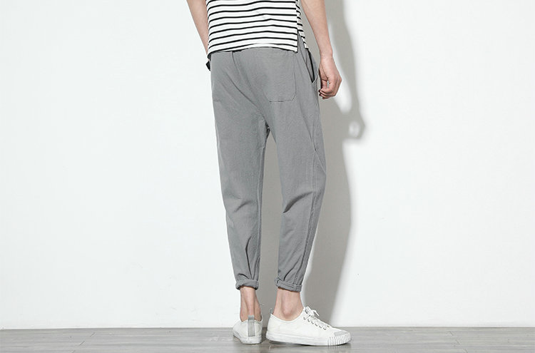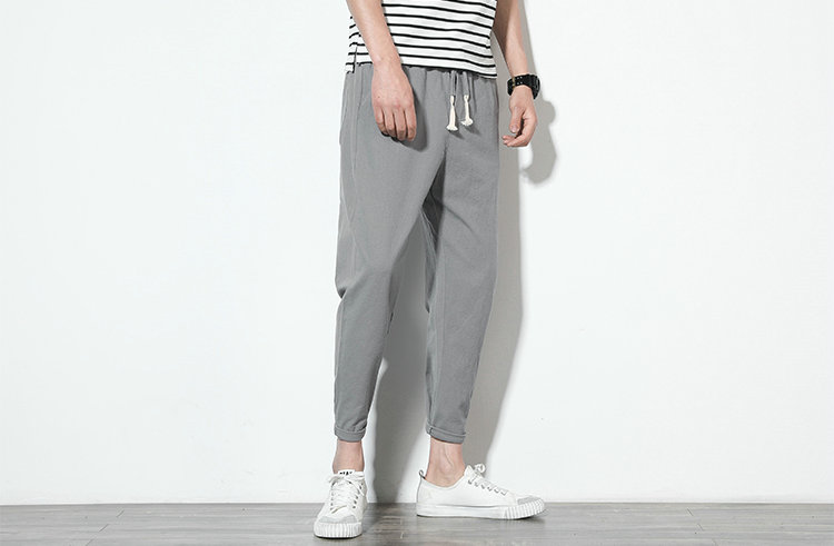Cotton Linen Joggers Black Men's Harem Pants Solid Fitness Casual Ankle-Length Mens Trousers Summer Streetwear Clothes Male
