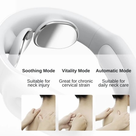 The Intelligent Neck Massager uses low-frequency TENS pulse technology to simulate three massage techniques.
