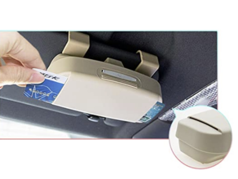 This handy clip-on case makes it super convenient to store or take your glasses out as you need when driving. It stays put and doesn’t block or hinder use of your sun visor at all.