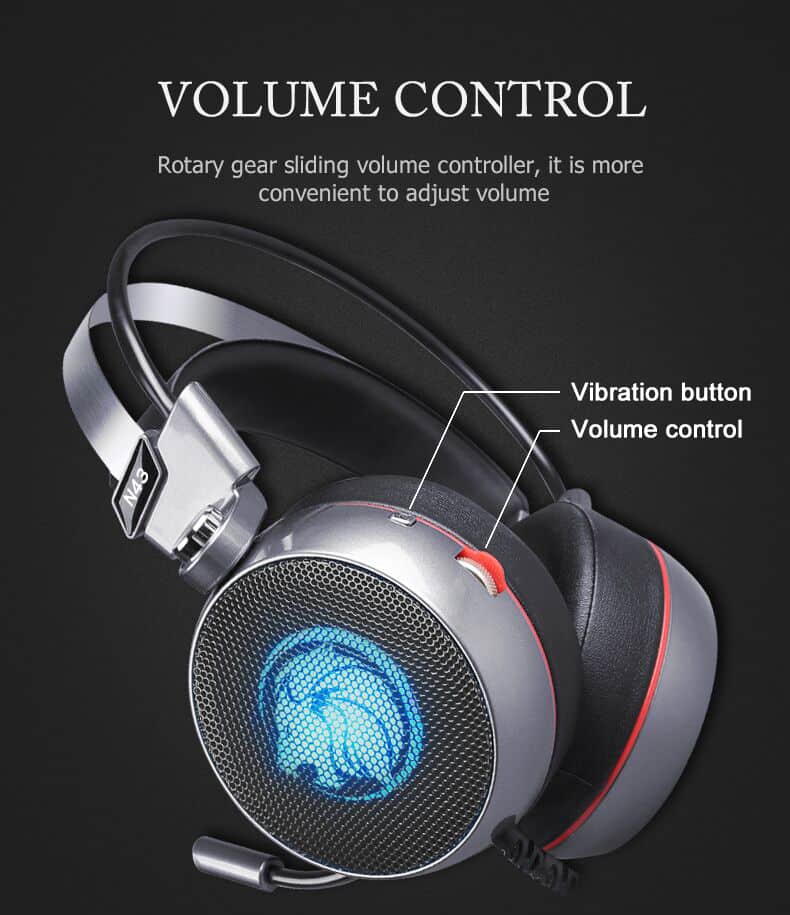 Virtual Surround Bass Gaming Headset with LED Mic